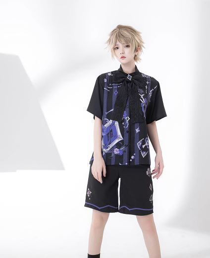ロリータファッション/秋冬/男装/カジュアル/セットアップ/ブラウス/ショートパンツ/ハーフパンツ/パンツ/2点セット/上下セット/プリント/ゆったり/クラシカル/姫ロリ/森ガール/メイド/メイド風/エレガント/上品/レトロ/お茶会/撮影/舞台/撮影用/発表会/クリスマス/バレンタイン/イベント/結婚式/ウェディング/二次会/謝恩会/デート/お呼ばれ/パーティ/デート