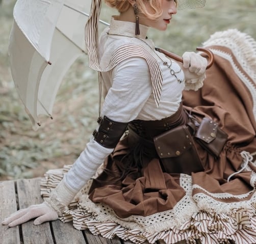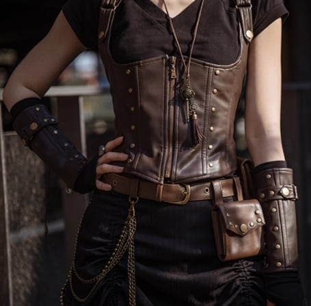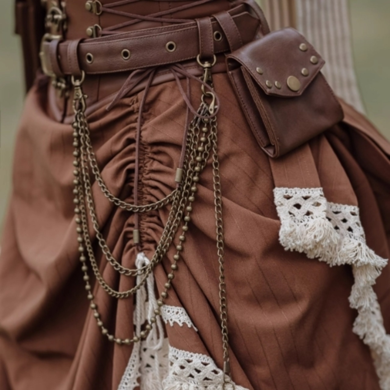 スチームパンク/ベルト/茶色/ブラウン/レザー/スナップ/ポケット/金属/チェーン/ジャラジャラ