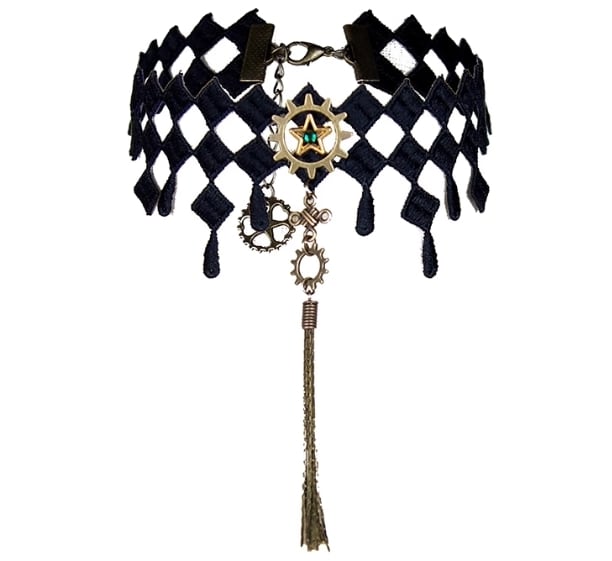 ロリータファッション steampunk チョーカー スチームパンク ゴスロリ ダイヤ柄 アーガイル モード アンティーク ゴシック パンク 歯車 ギア 機械 ブラック ホワイト