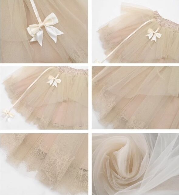 スチームパンク レース チュールスカート パニエ アンダースカート ペチコート ミニ丈 ショート丈 リボン 重ね着 レイヤード