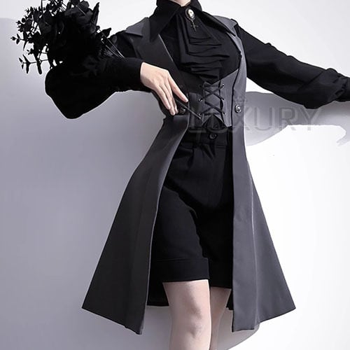 皇子 ベスト ロングベスト ロングジレ アンダーバスト ひざ丈 グレー 灰色 エレガント スタイル 貴族風 コスプレ 普段使い 撮影 イベント loli5666