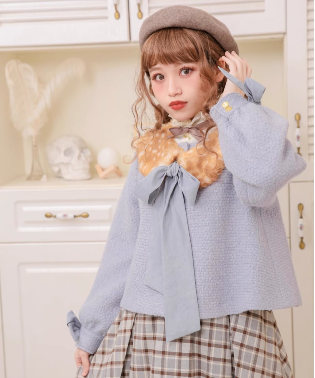 パフスリーブデザインとバルーンスリーブが特徴のこのショート丈コートは、