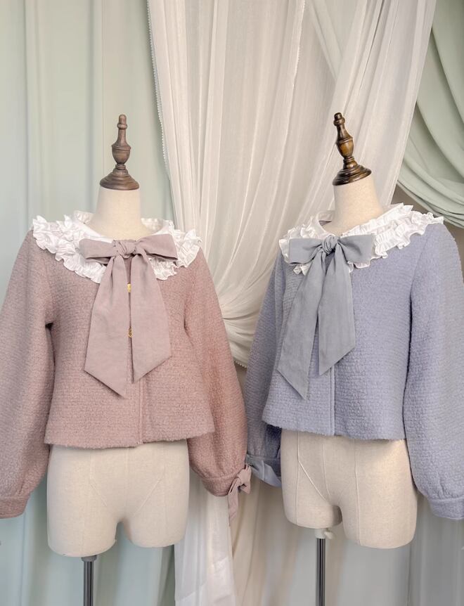 甘ロリ ジャケット コート レディース パフスリーブ 袖コン ショート丈 クロップド丈 バルーンスリーブ 小長袖 春 秋 カジュアル フェミニン ガーリー 可愛い レトロ クラシカル デイリー お出かけ デート