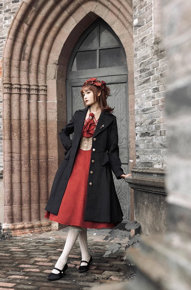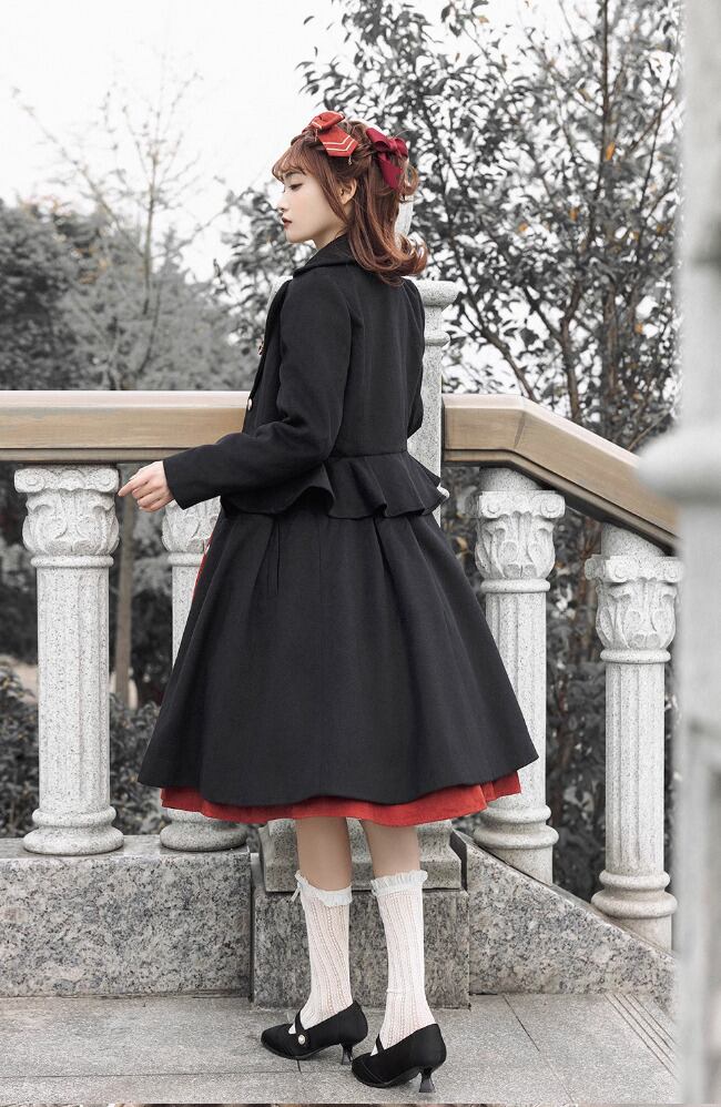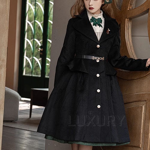 【納期40日】 クラロリ ロリータ ウールコート レディースファッション エレガント クラシカル ロング丈 クラロリ 秋冬 ゴージャス フォーマル パーティー お茶会 ベルト付き アンティーク調