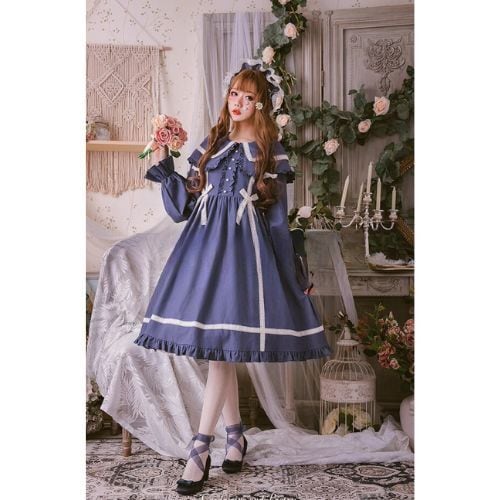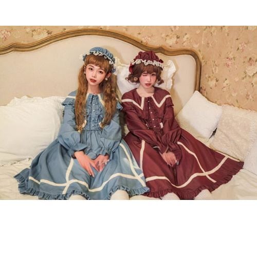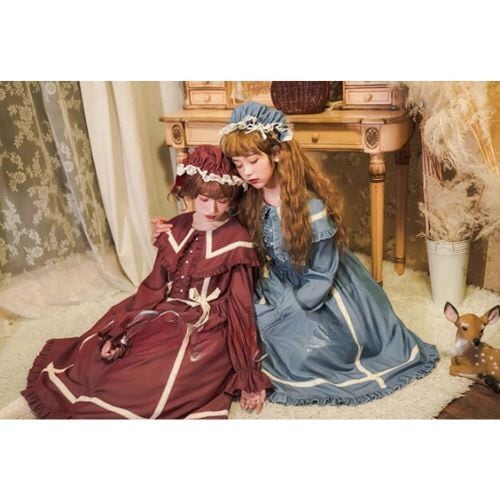甘ロリ ケープワンピース ベビードール襟 秋冬 クラロリ 乙女系 ドール系 ケープ付き 取り外し可能 パフスレーブ プリンセスライン お茶会 パーティー ガーリー レトロ 可愛い リボン