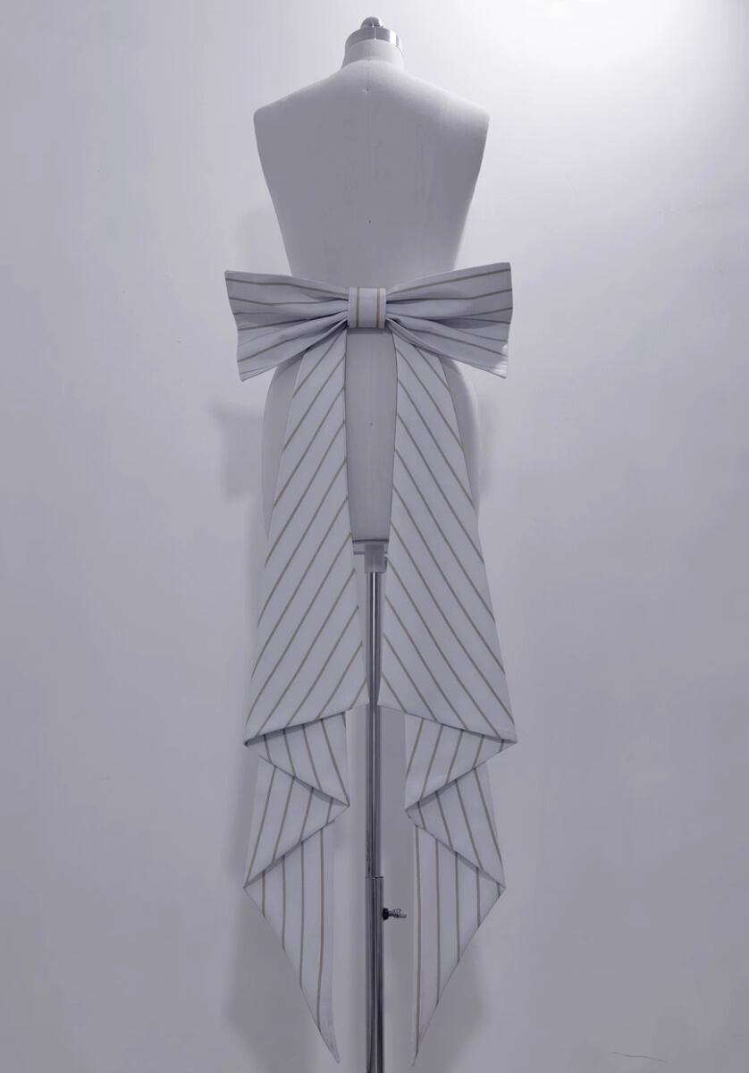 バックリボンのディテールが、後ろ姿を華やかに演出し、