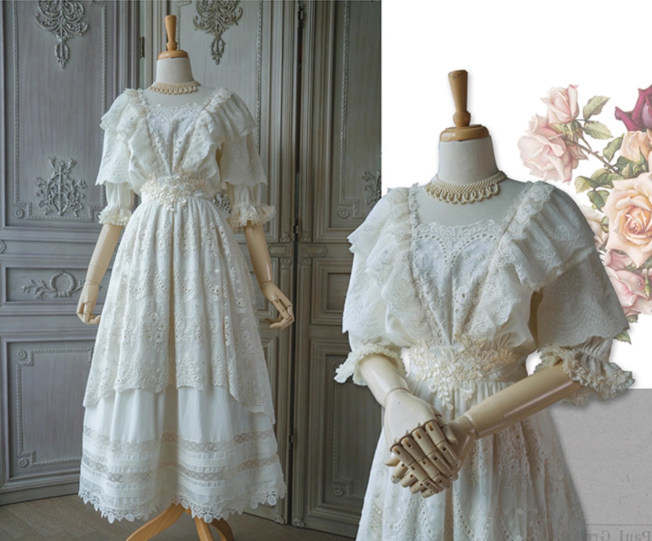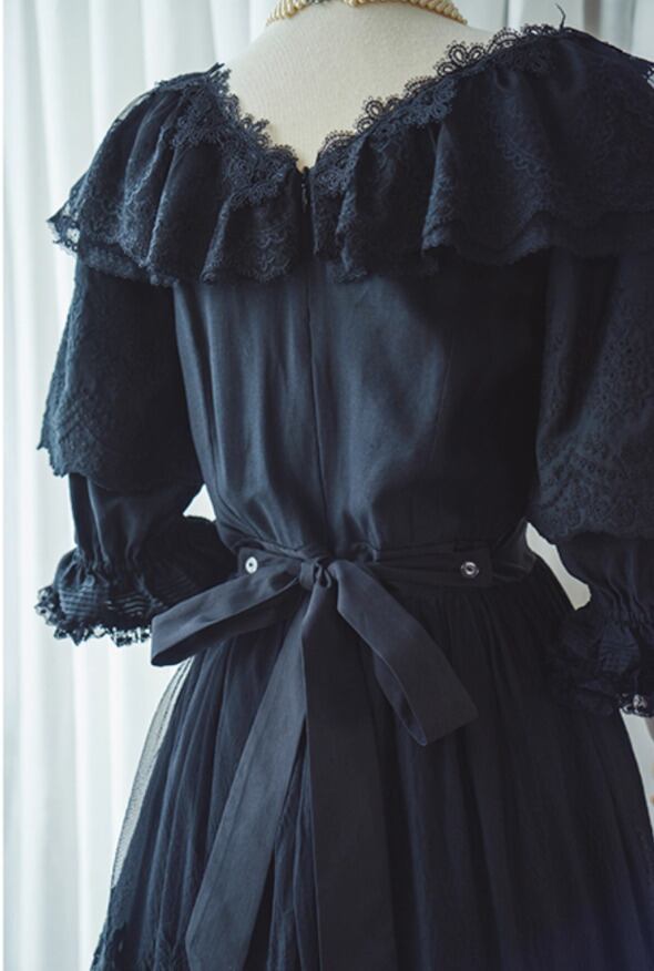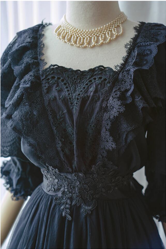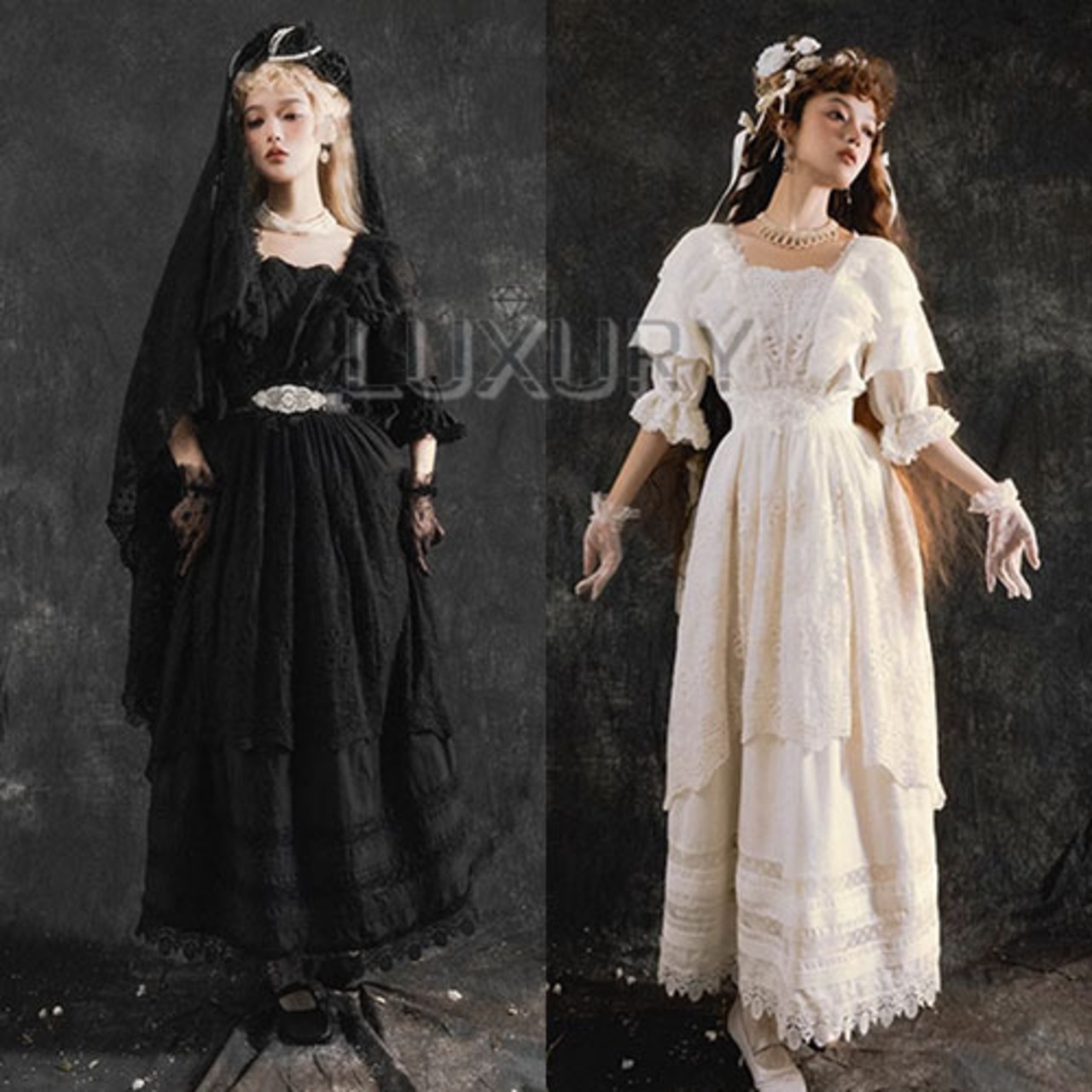 【納期4ヶ月半】ゴスロリファッション ゴスロリ ワンピースのみ ロング丈 フリル レトロ 古風 エレガント レディースファッション お呼ばれ パーティー イベント 5分袖 2色 クラシック ヴィンテージ風