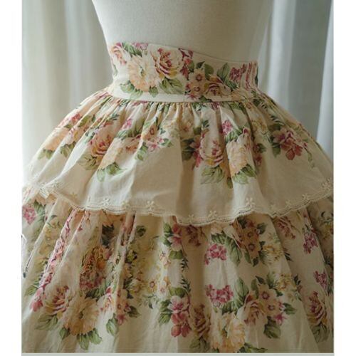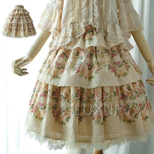 ロリータファッション スカートのみ 花柄 お花 レース ティアード 膝丈 ひざ丈 ミディアム レトロ スウィート ガーリー 春夏 普段着 普段使い デイリー デート 森 ピクニック