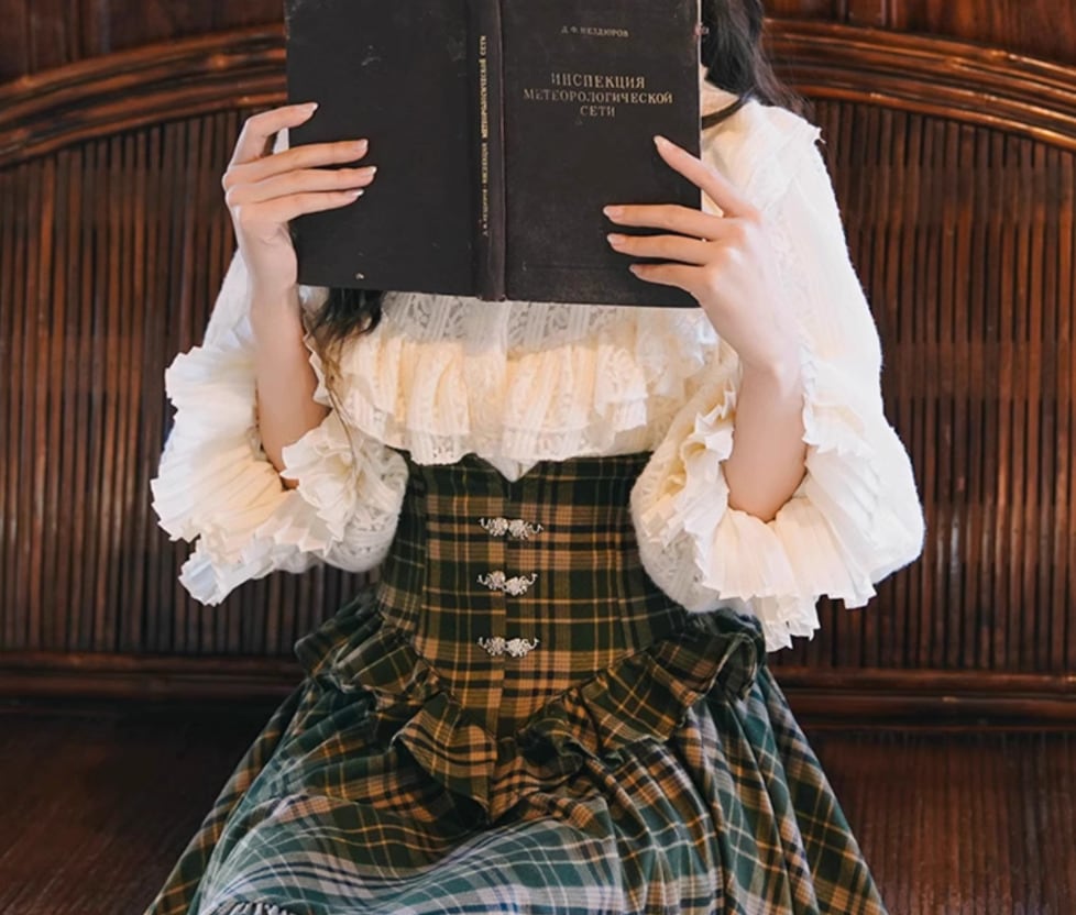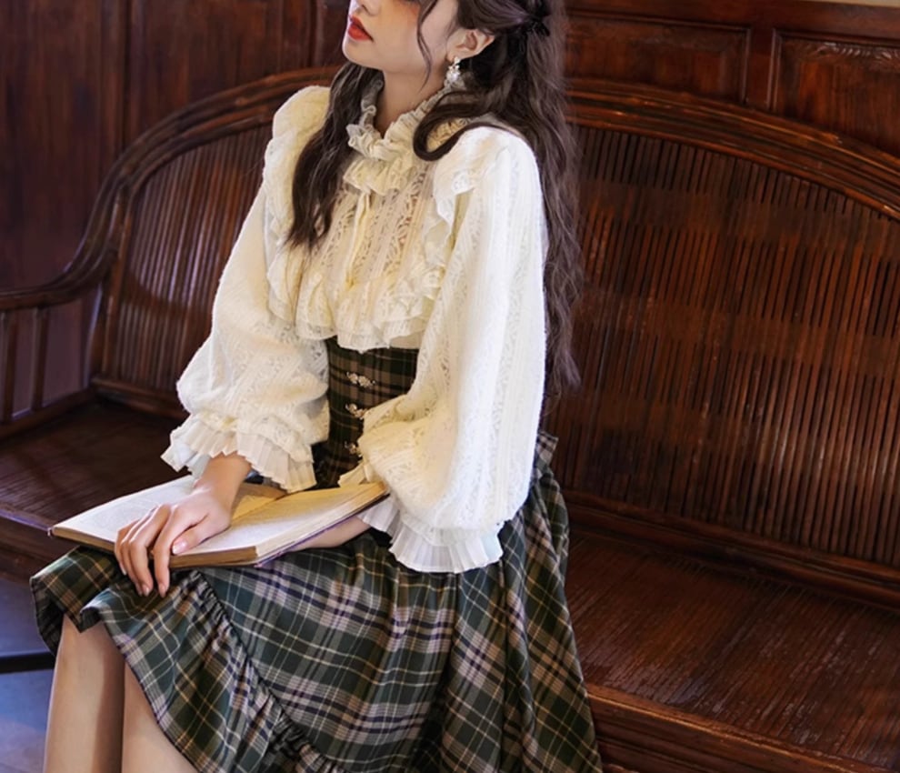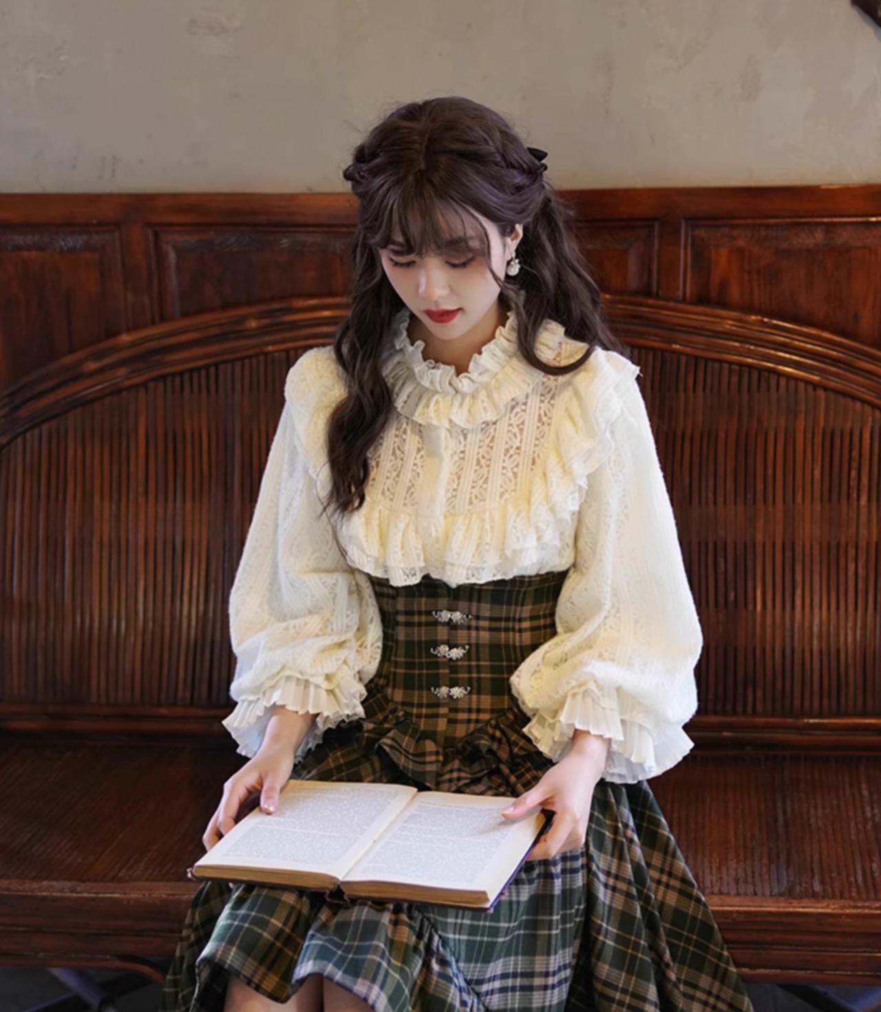 セミロリータ ブラウスのみ ランタンスリーブ フレンチヴィンテージ 宮廷風デザイン レース 秋冬 クラシック ガーリー フェミニン 清楚 厚手 デイリー デート ライトアプリコット