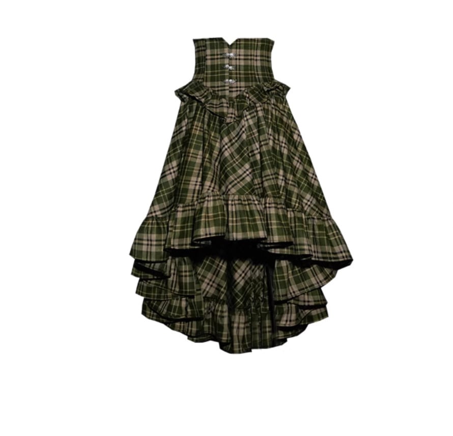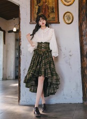 セミロリータ フレアスカートのみ ロング丈 燕尾デザイン コルセット 宮廷風 ヴィクトリア調 クラシカル 格子柄 エレガント 冬 冬物 冬コーデ 冬服 イベント 華やか 大人可愛い デート