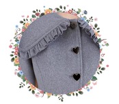 このコートは優雅なグレー×ホワイトの配色と、フリルが施されたデザインが特徴で、フレンチレトロなスタイルを演出します。