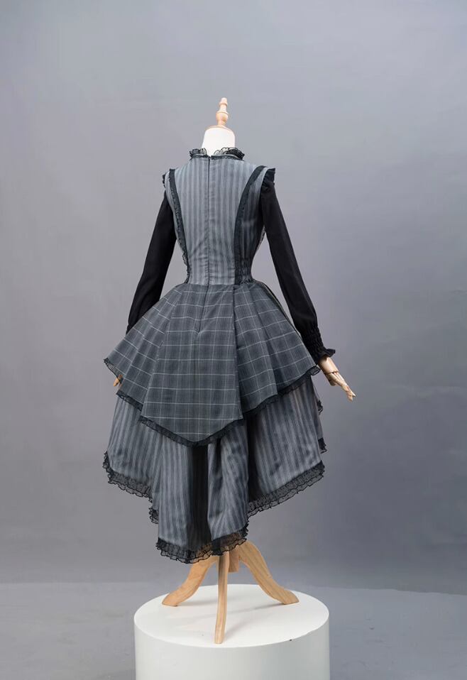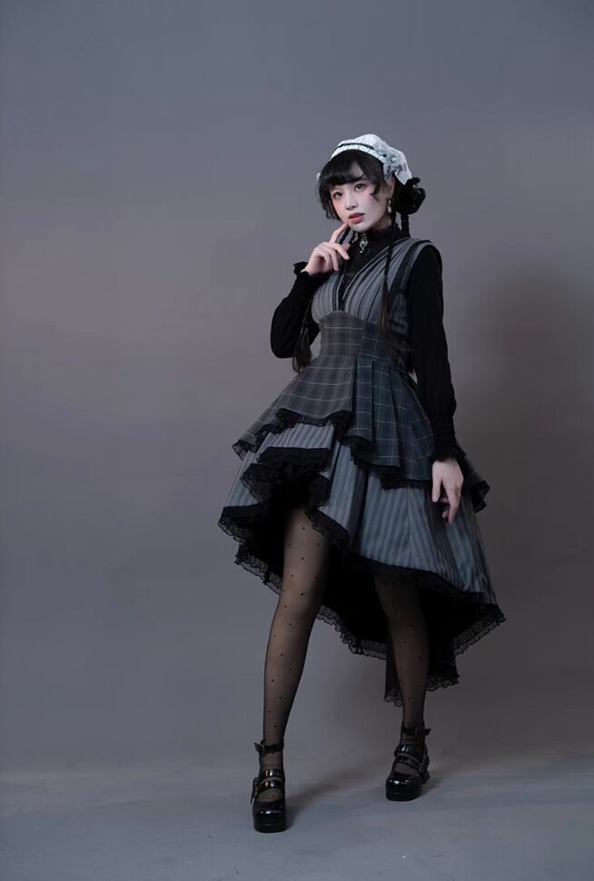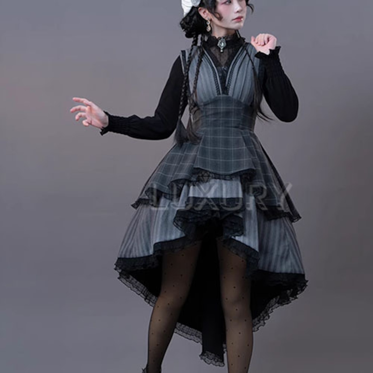 ロリータワンピース ロリータドレス ジャンパースカートのみ ストライプ 不規則裾 ゴシック 暗黒系 ゴージャス 幻想的 ブラック レディースファッション イベント 撮影 舞台 撮影用