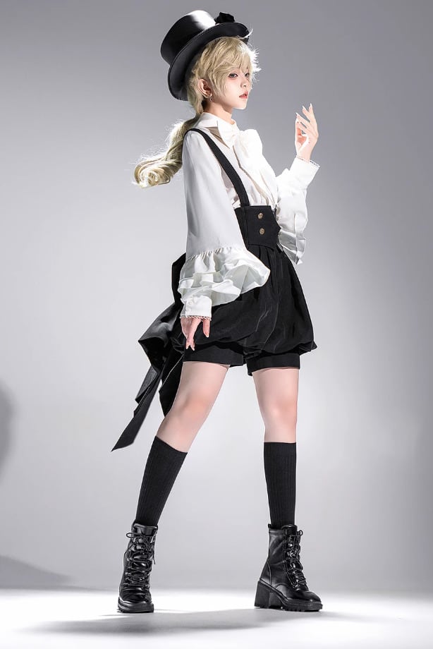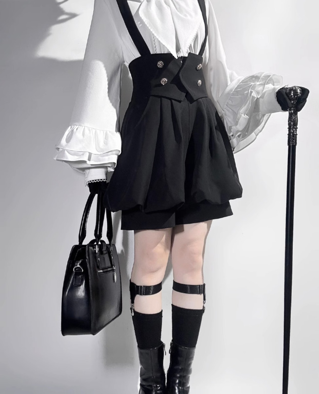 男装 皇子 リボントレーン付きショートパンツ プリンススタイル ミニ丈 ショート丈 膝上 暗黒系 かわいい ブラック 春秋コーデ 撮影 舞台 撮影用 イベント