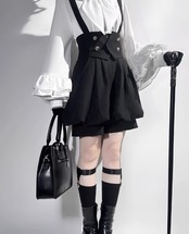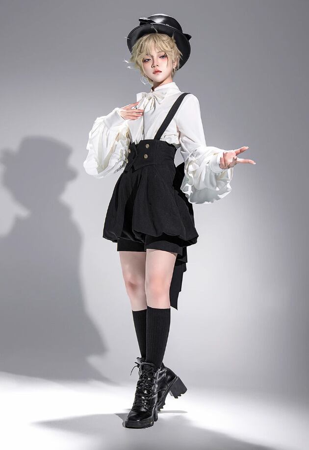 【納期130日】男装 皇子 リボントレーン付きショートパンツ プリンススタイル ミニ丈 ショート丈 膝上 暗黒系 かわいい ブラック 春秋コーデ 撮影 舞台 撮影用 イベント