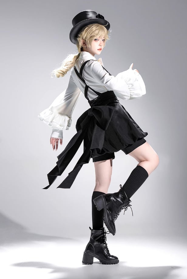 ブラックの色合いは、シックでありながらも個性的な魅力を引き立て、イベントや撮影に最適です。