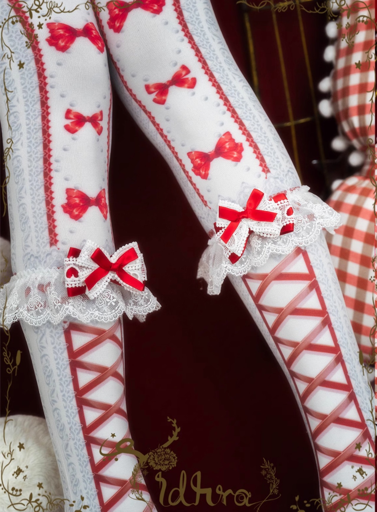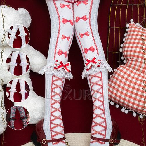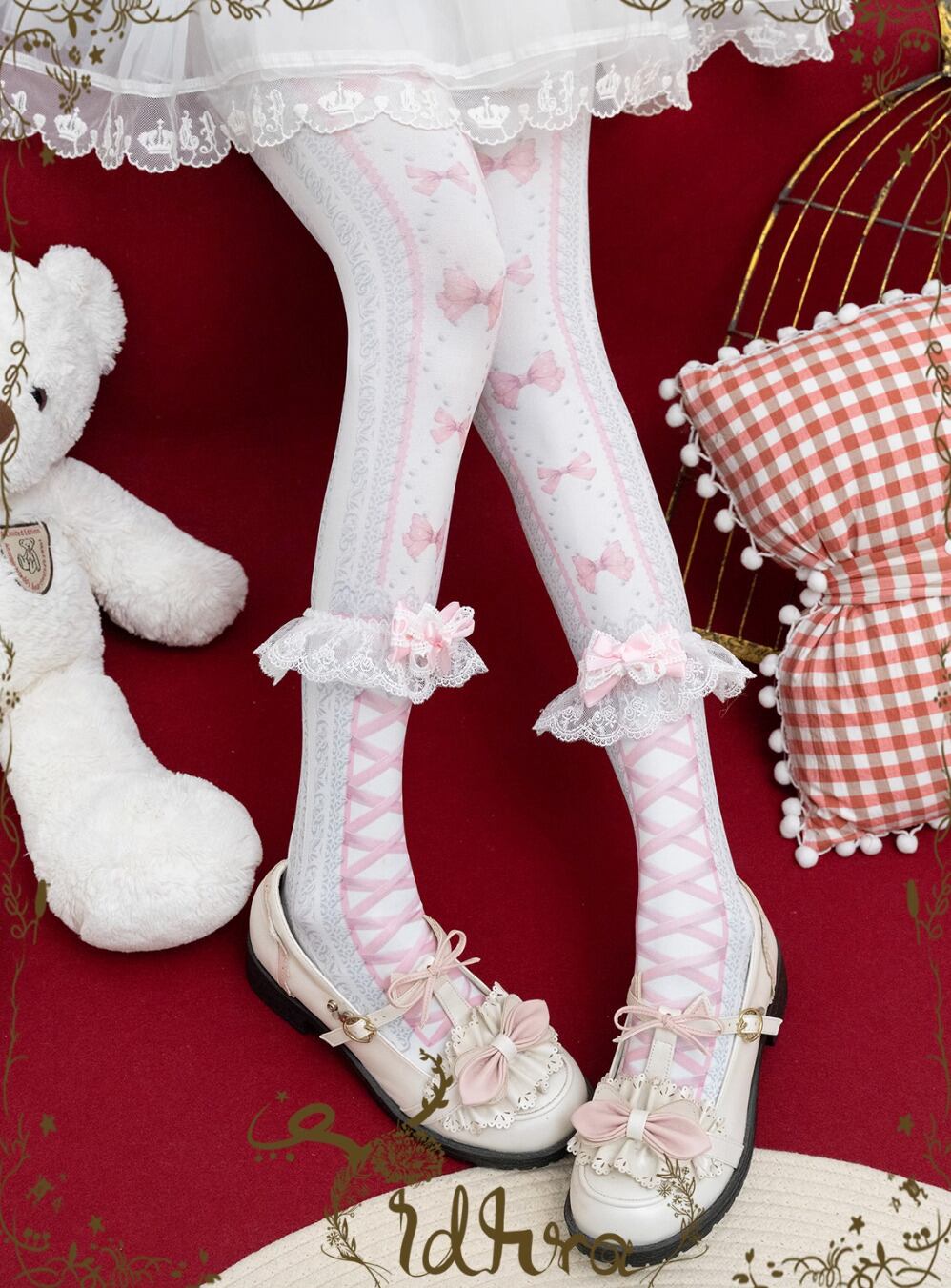 ロリータファッション タイツ 5色 リボン柄 リボン取り外し可能お嬢様 ゴシック 童話風 スウィート ガーリー お茶会 イベント レディースファッション