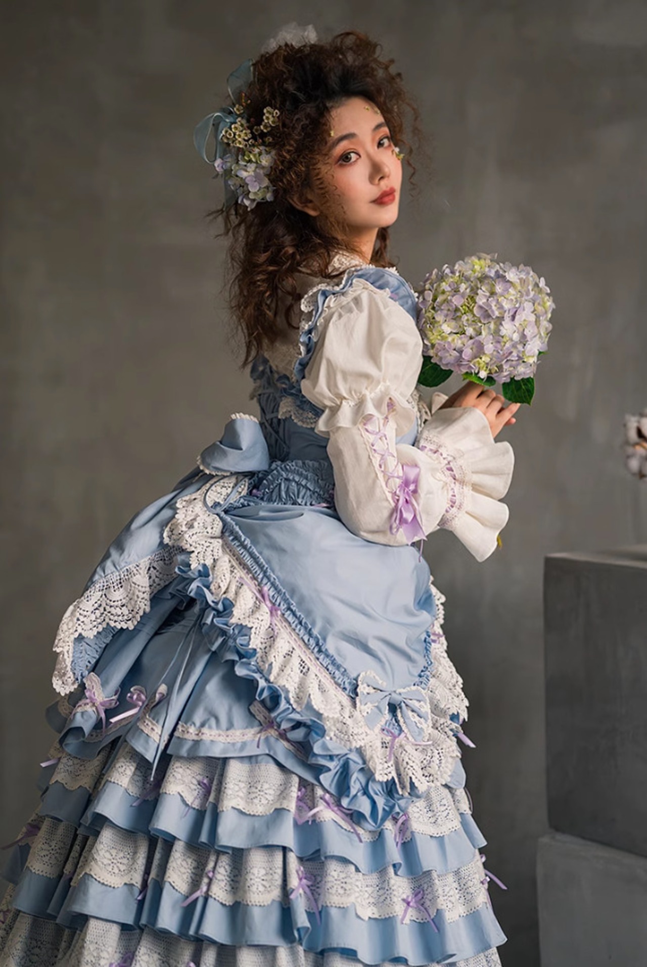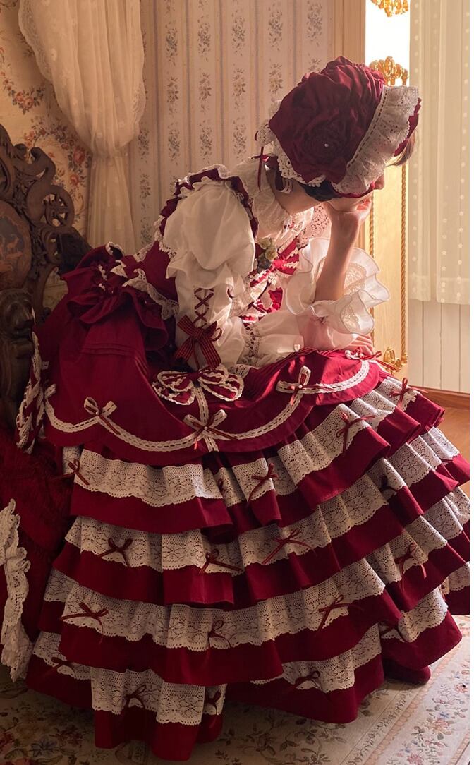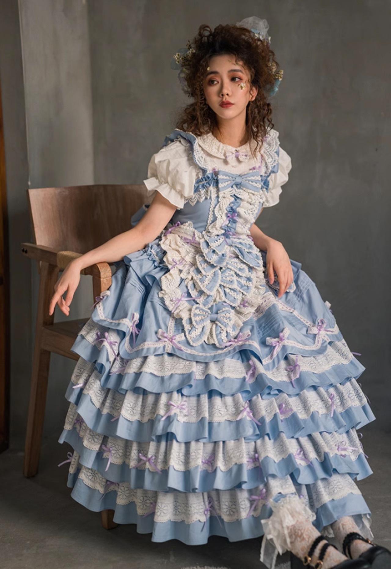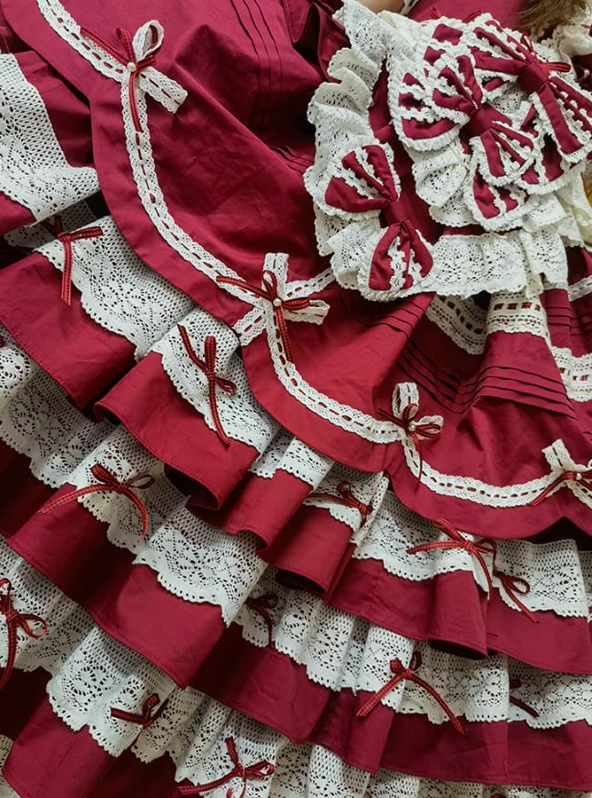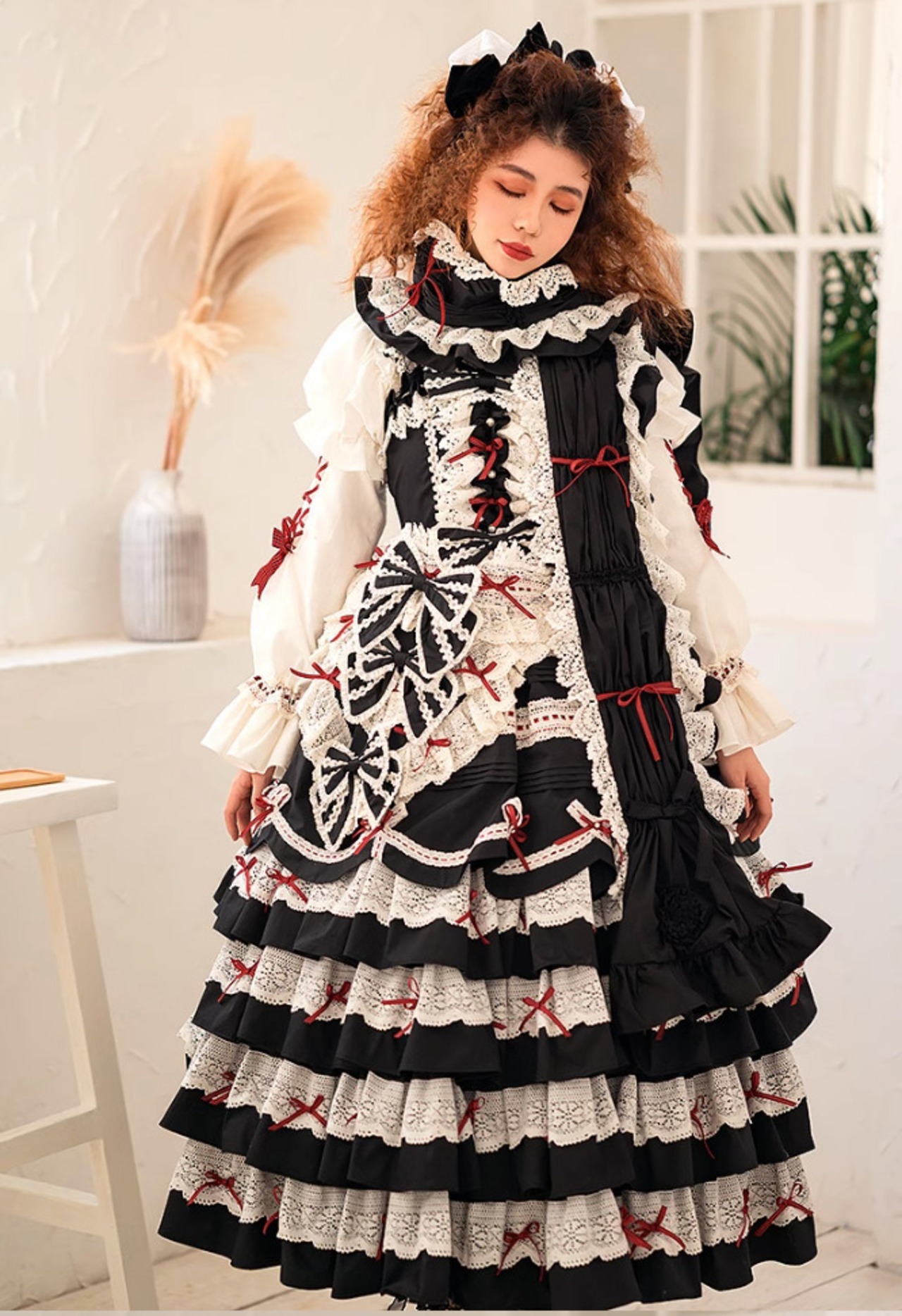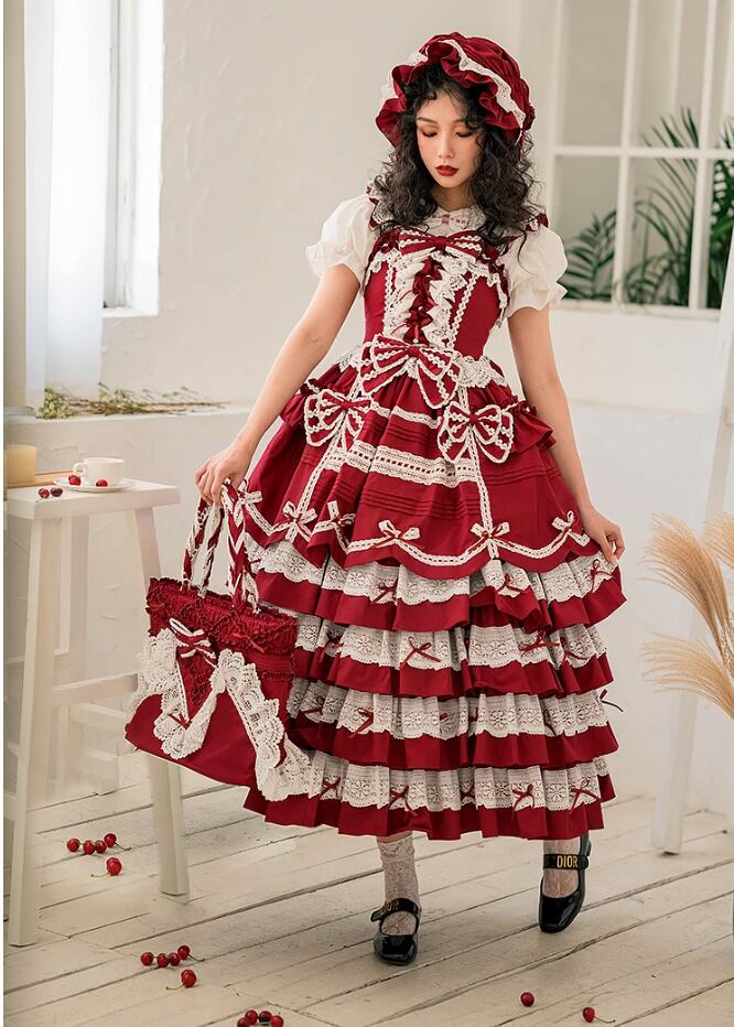 【納期40日】ロリータファッション ジャンパースカート のみ 5色 リボン たっぷりフリル ひざ下丈 ミモレ丈 お嬢様 童話風 スウィート かわいい 秋 秋物 秋服 イベント 舞台 撮影用
