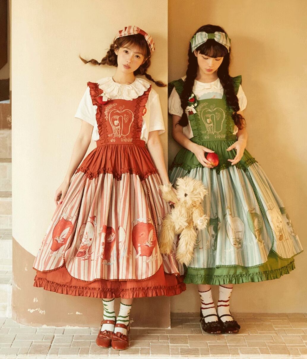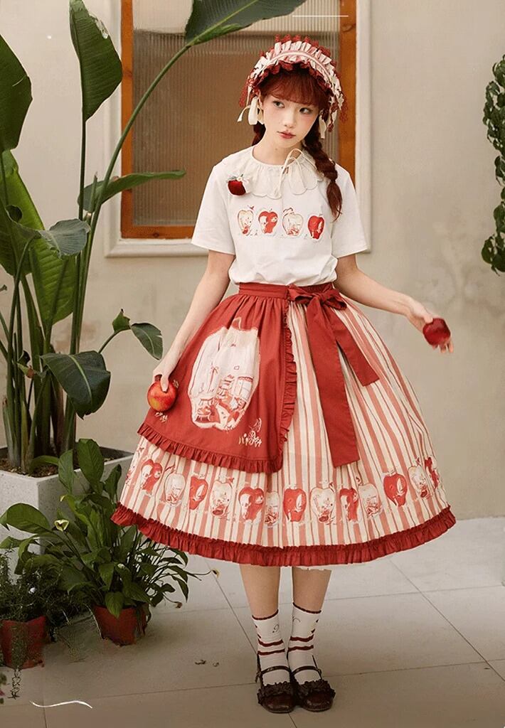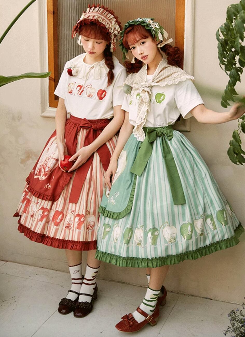 ロリータファッション 靴下 のみ 2色 りんご プリント フルーツ 童話風 森ガール ガーリー スウィート ナチュラル お茶会 イベント 普段着 普段使い デイリー お散歩