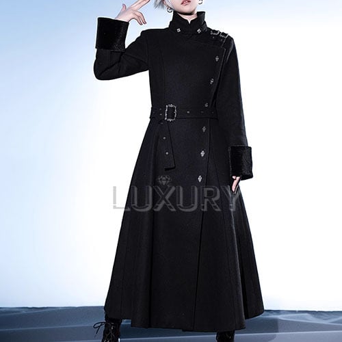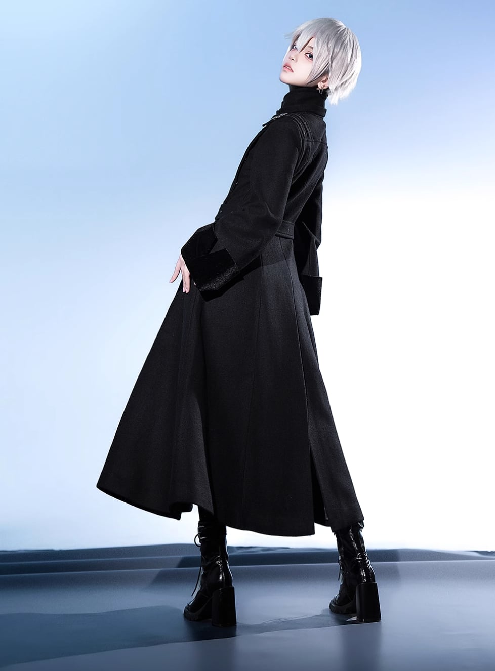 【納期2ヶ月半】男装 皇子 コート のみ 王子系 メンズライク Aライン シルエット ウール 秋冬 アウター スリム見え クラシカル ブラック クール 暗黒系 イベント 撮影 舞台 撮影用