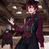 男装 皇子 ブラウス シャツ のみ 王子系 エレガント ワインレッド クラシカル 暗黒系 クール スリムシルエット ゴシック 春秋向け イベント 撮影 舞台